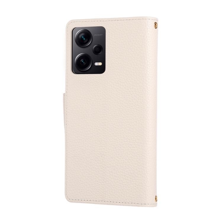 Funda de cuero con hebilla redonda y cremallera para Redmi Note 12 Pro 5G, con correa cruzada (blanca)