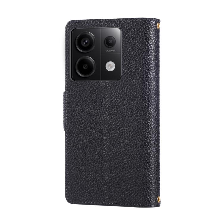 Funda de cuero con hebilla redonda y cremallera para Redmi Note 13 Pro 4G, con correa cruzada (negro)