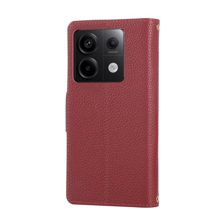 Funda de cuero con hebilla redonda y cremallera para Redmi Note 13 Pro 5G, con correa cruzada (roja)
