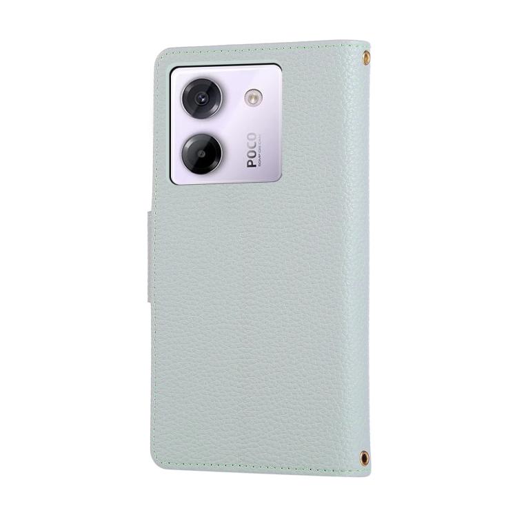 Funda de cuero con hebilla redonda y cremallera para Xiaomi Poco M7 Pro 5G, con correa cruzada (azul cielo)