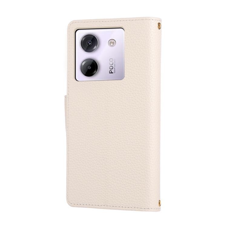 Funda de cuero con hebilla redonda y cremallera para Xiaomi Poco M7 Pro 5G, con correa cruzada (blanca)