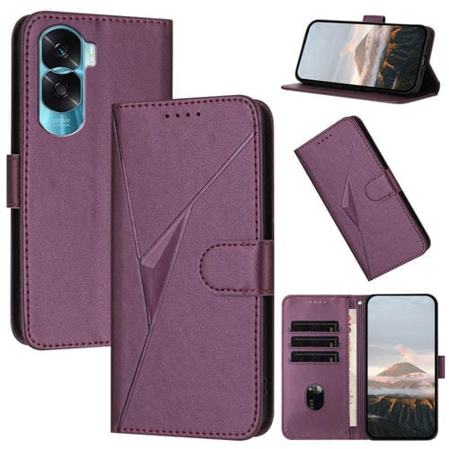 Funda de Cuero con Hebilla y Diseño de Triángulos para Honor X50I y Honor 90 Lite (Morado Oscuro)