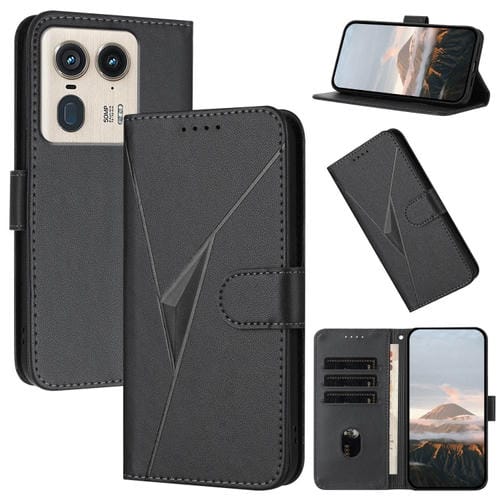 Funda de Cuero con Hebilla y Diseño Triangular para Motorola Edge 50 Ultra (Negro)