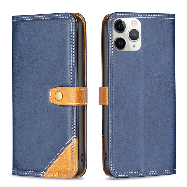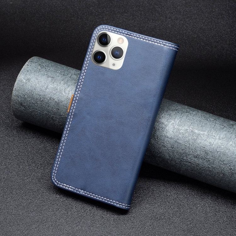 Funda de Cuero para iPhone 11 Pro Max con Hilo de Coser Doble a Juego (Azul)