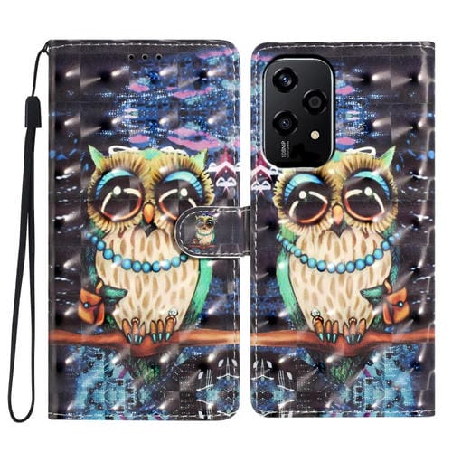 Funda de Cuero Honor 200 Lite con Patrón 3D Global Búho de Ojos Grandes