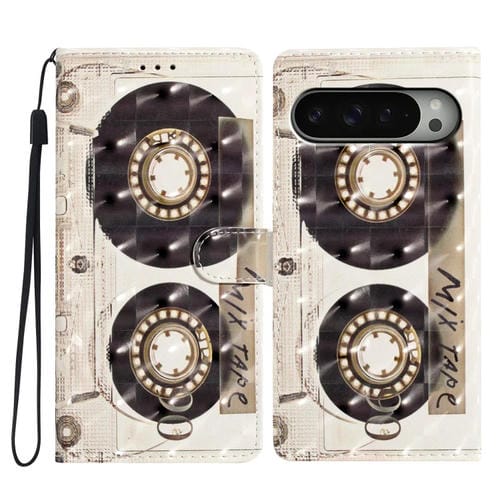 Funda de Cuero con Patrón 3D para Google Pixel 9 y 9 Pro con Cinta