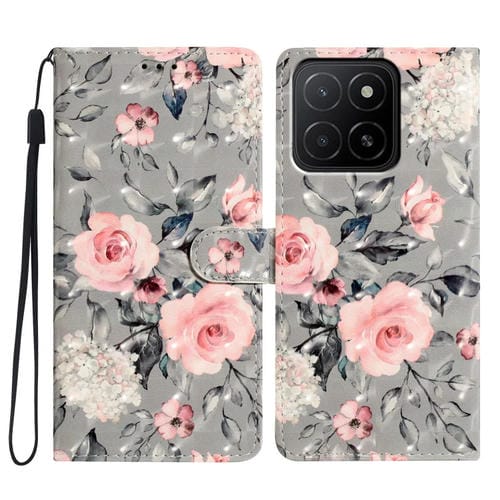 Funda de Cuero con Patrón 3D para Honor X5B 4G (Flor de Base Gris)