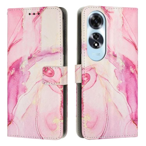 Funda de Cuero con Patrón de Mármol Pintado para Teléfono Oppo A60 4G Global (Oro Rosa)