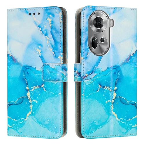 Funda de Cuero con Patrón de Mármol Pintado para Teléfono Oppo Reno11 5G Global (Azul Verde)