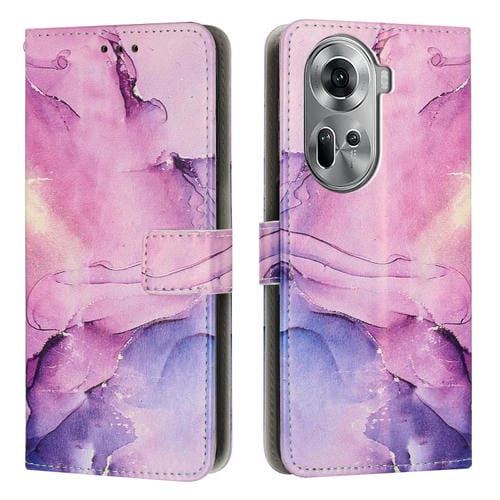Funda de Cuero con Patrón de Mármol Pintado para Teléfono Oppo Reno11 5G Global (Morado)