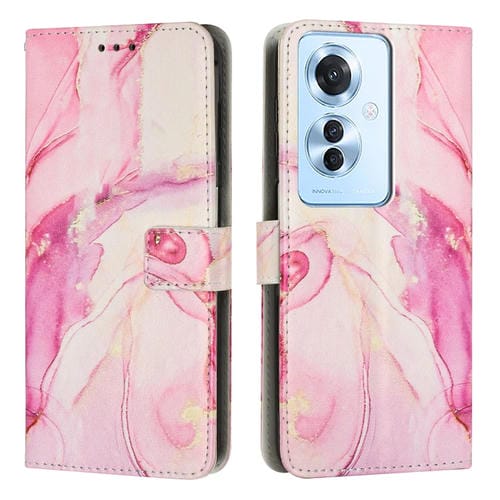 Funda de Cuero con Patrón de Mármol Pintado para Teléfono Oppo Reno11 F Global (Oro Rosa)
