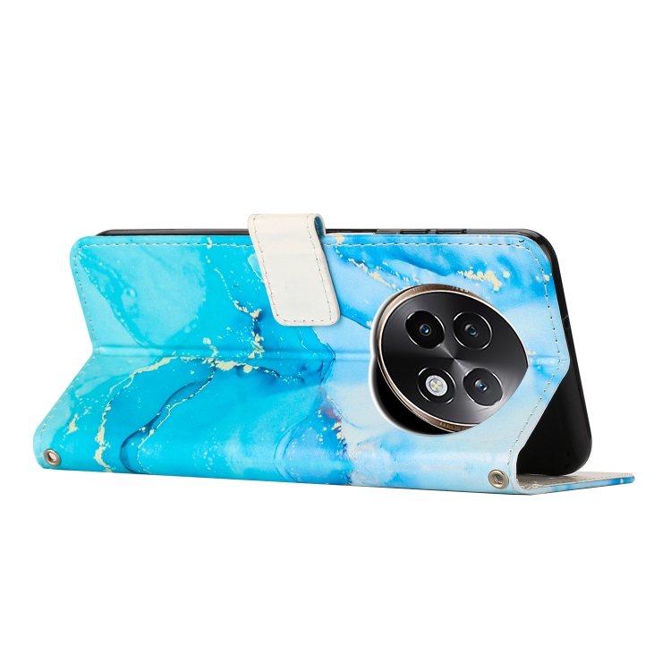 Funda de Cuero con Patrón de Mármol Pintado para Teléfono Realme 13+ 5G Global (Azul y Verde)