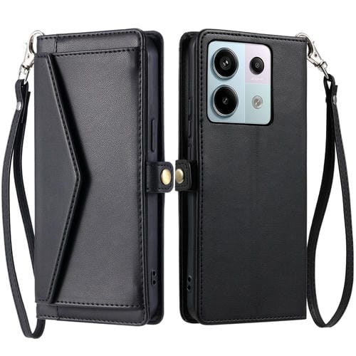 Funda de Cuero con Ranura para Múltiples Tarjetas y Billetera Global para Redmi Note 13 Pro 5G con Cordón (Negro)