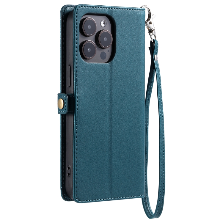 Funda de Cuero para iPhone 16 Pro Max con Ranura para Tarjetas y Billetera (Verde)