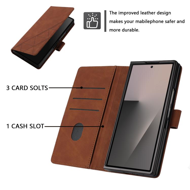 Funda de cuero con relieve 3D para Samsung Galaxy Z Fold7 5G (marrón)