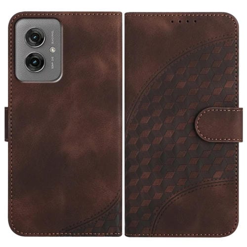 Funda de Cuero con Relieve Cabeza de Elefante para Motorola Moto G55 Yx0060 con Cordón (Café)