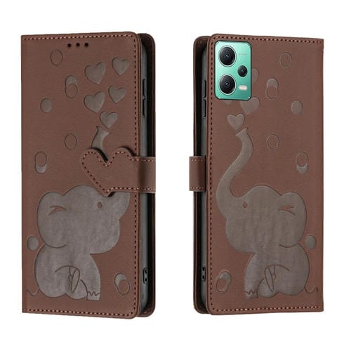 Funda de Cuero con Relieve de Elefante de Dibujos Animados para Redmi Note 12 5G (Marrón)
