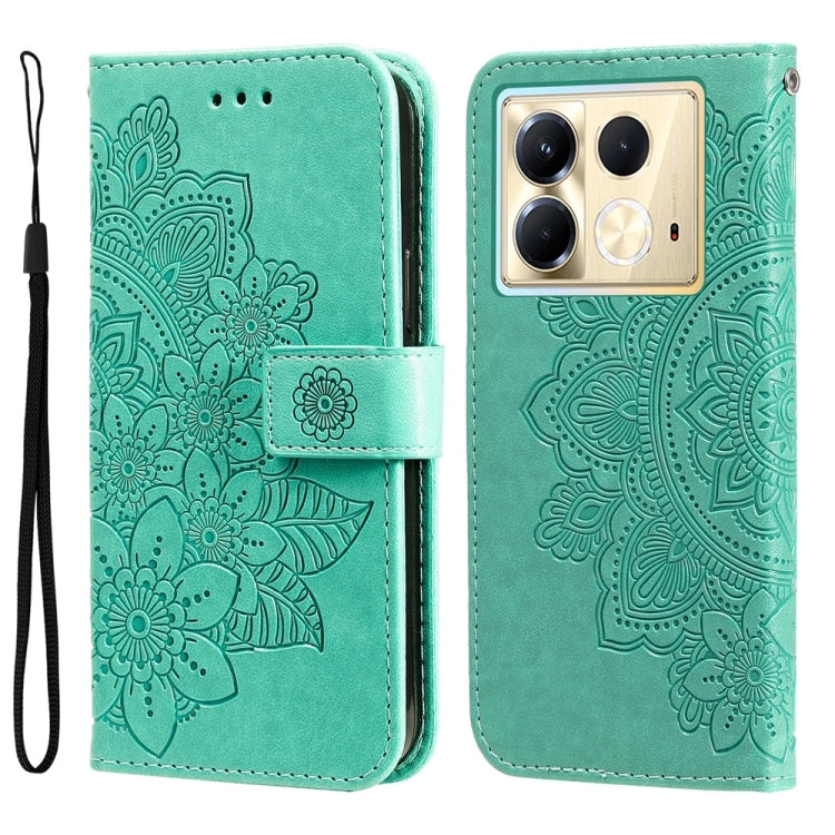 Funda de Cuero con Relieve Flores Siete Pétalos para Infinix Note 40 5G (Verde)