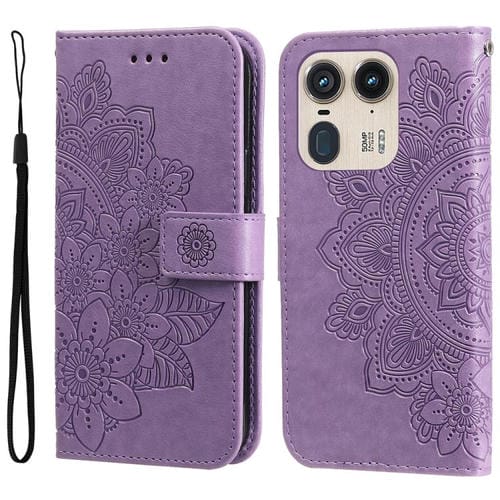 Funda de Cuero con Relieve de Flores de Siete Pétalos para Motorola Edge 50 Ultra/X50 Ultra (Morado Claro)