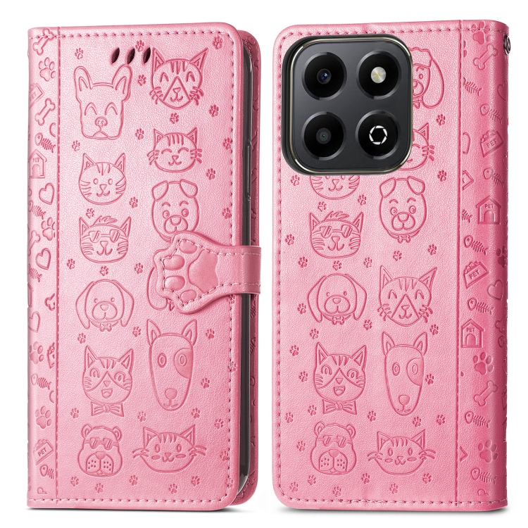 Funda de Cuero con Relieve de Gato y Perro para Honor 200 (Rosa)