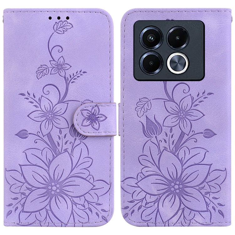 Funda de Cuero con Relieve de Lirio para Infinix Note 40 5G (Morado)