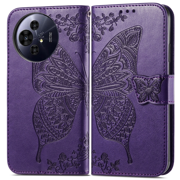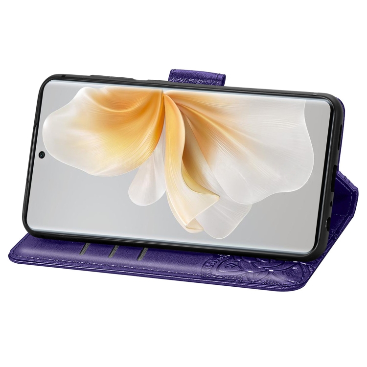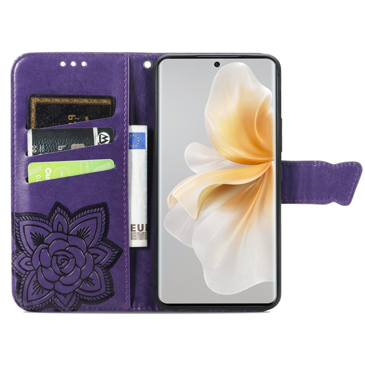 Funda de Cuero para TCL 50 Pro Nxtpaper con Relieve Mariposa y Flor (Morado)