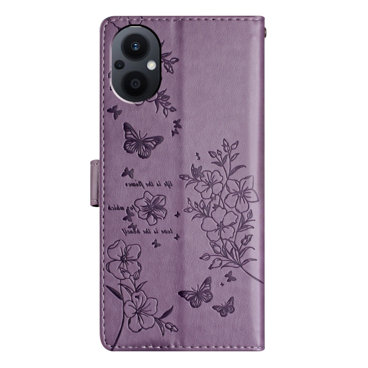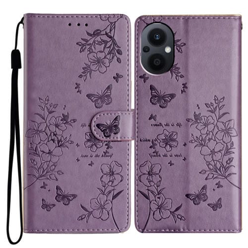 Funda de Cuero con Relieve de Mariposa y Flor para Oppo Reno7 Z 5G (Morado)