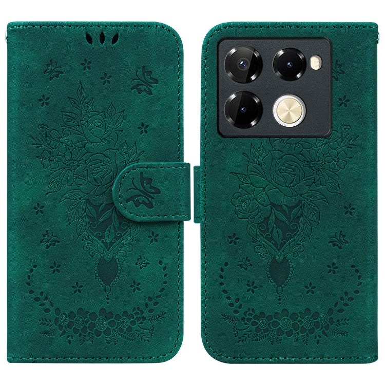 Funda de Cuero con Relieve Mariposa y Rosa para Infinix Note 40 Pro 4G/5G (Verde)