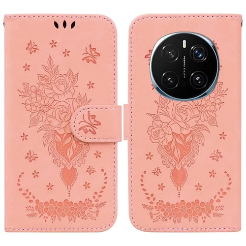 Funda de Cuero con Relieve Mariposa y Rosa para Honor Magic7 Pro (Rosa)