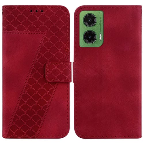 Funda de Cuero con Relieve en Forma de Siete para Motorola Moto G35 (Rojo)