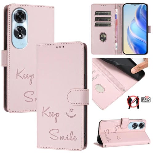 Funda de Cuero con Relieve Rfid para Teléfono Oppo A60 4G Global Smile (Rosa)