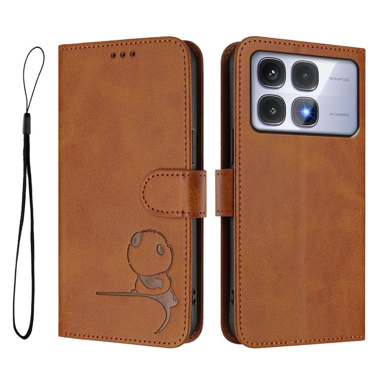 Funda de cuero con relieve RFID y cordón para Redmi K70 Ultra (marrón)