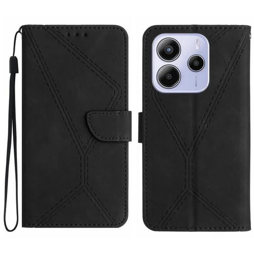 Funda de Cuero con Relieve y Costuras para Redmi Note 14 4G (163,25mm) (Negro)