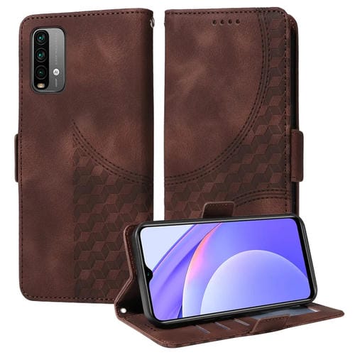 Funda de Cuero con Rombos En Relieve y Estrellas para Xiaomi Poco M3 (Marrón)