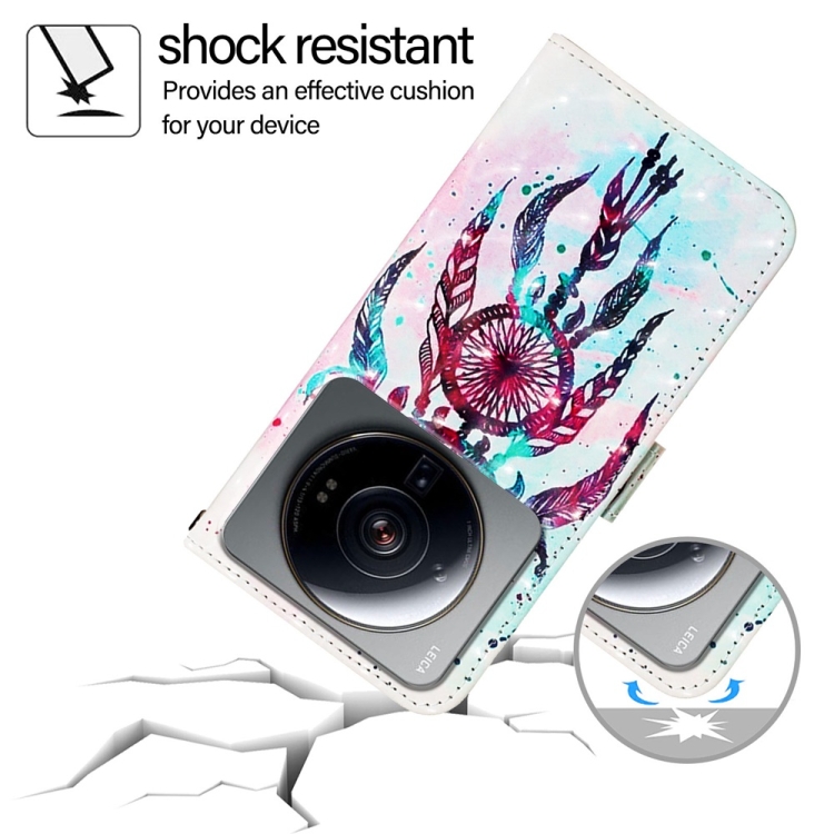 Funda de Cuero con Tapa Horizontal con Pintura 3D para Xiaomi 12S Ultra (Campanas de Viento con Gotas de Colores)