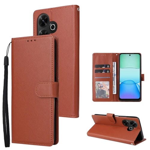 Funda de Cuero con Tapa Horizontal Multifuncional para Teléfono Xiaomi Redmi 13 4G con Ranura para Tres Tarjetas (Marrón)