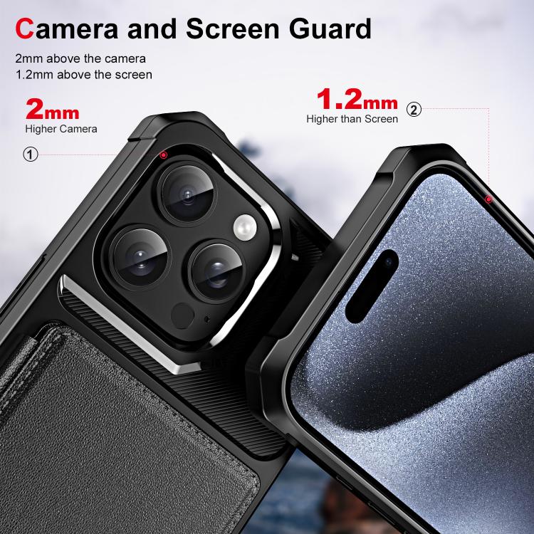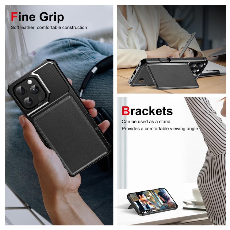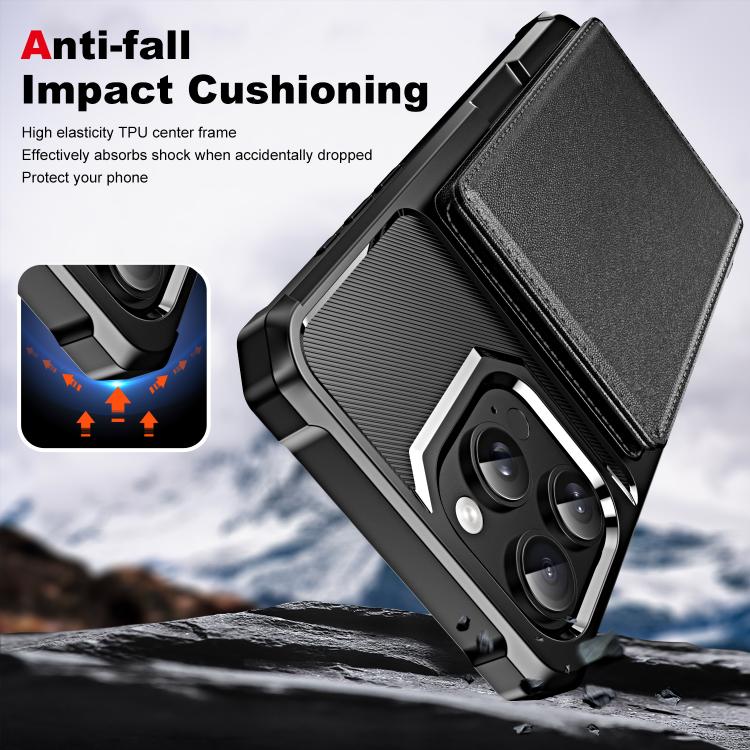 Funda de Cuero con Tapa Horizontal para iPhone 16 Pro Max con Tarjetero (Negro)