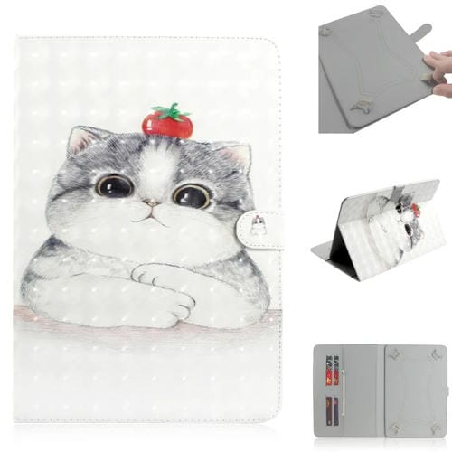 - 1x Funda Cuero Universal Tablet 7 Pulgadas con Tapa Horizontal Dibujo 3D Soporte Ranura Tarjeta Billetera (Cute Cat)
