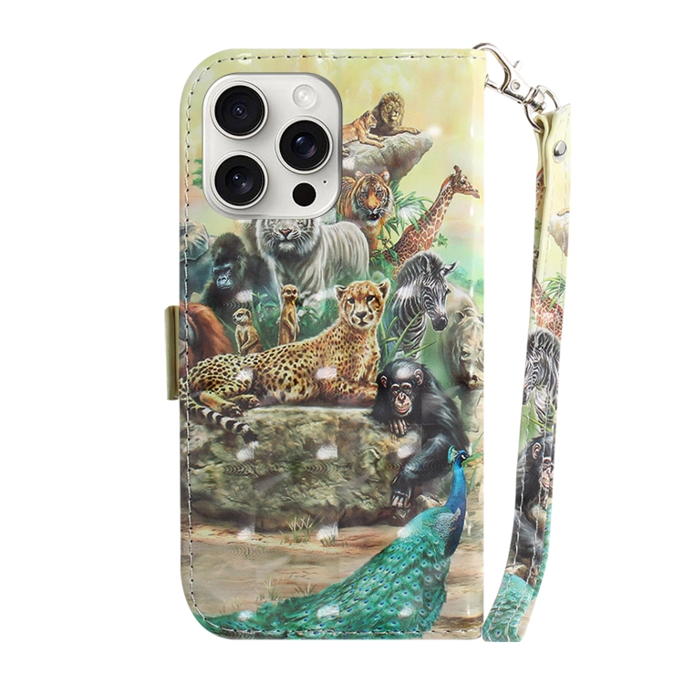 Funda de Cuero con Tapa Horizontal y Diseño 3D para iPhone 16 Pro Max/16 Pro (Zoológico)