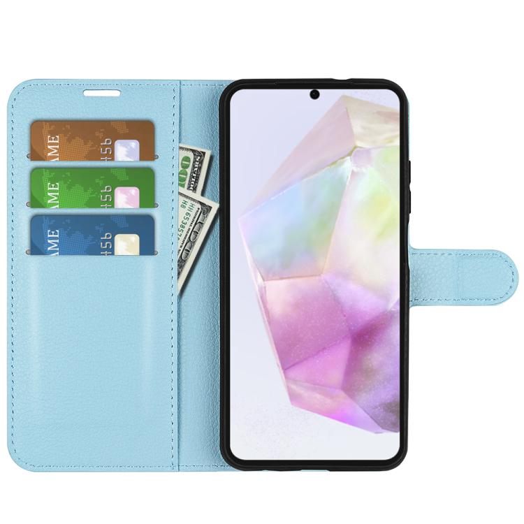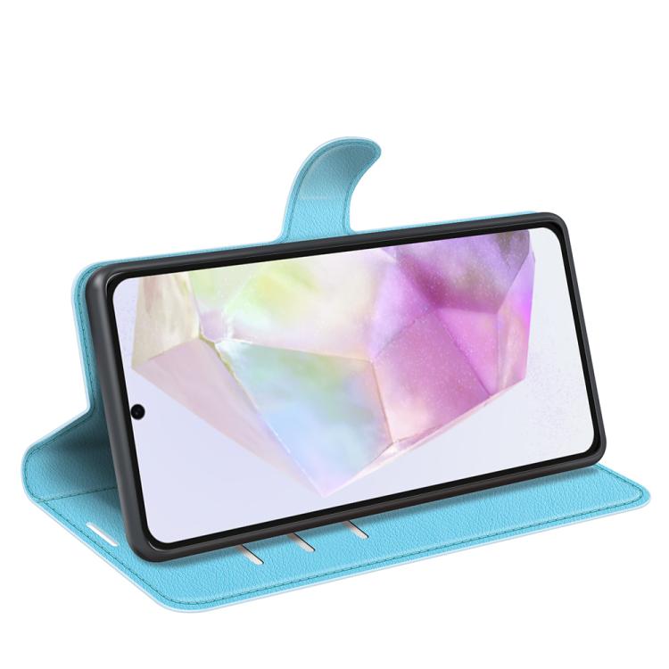 Funda de Cuero para Samsung Galaxy A36 con Tapa Horizontal Textura de Lichi y Soporte (Azul)
