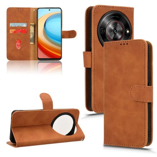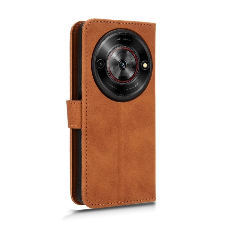 Funda de Cuero con Tapa Magnética para ZTE Blade A75 5G (Marrón)