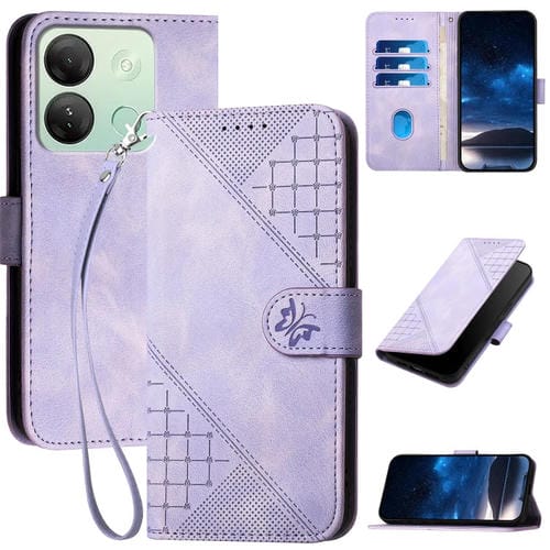 Funda de Cuero con Tapa para Infinix Smart 7 India Yx0080 con Diseño Mariposa y Cordón (Morado Claro)
