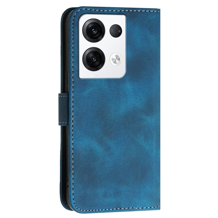 Funda de Cuero con Tapa para Teléfono Oppo Reno8 Pro 5G Global Yx0080 con Diseño En Relieve de Mariposa y Cuadrícula y Cordón (Azul Oscuro)