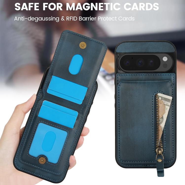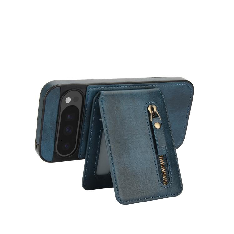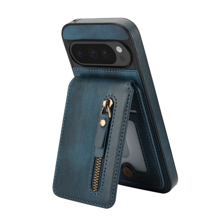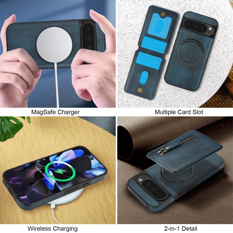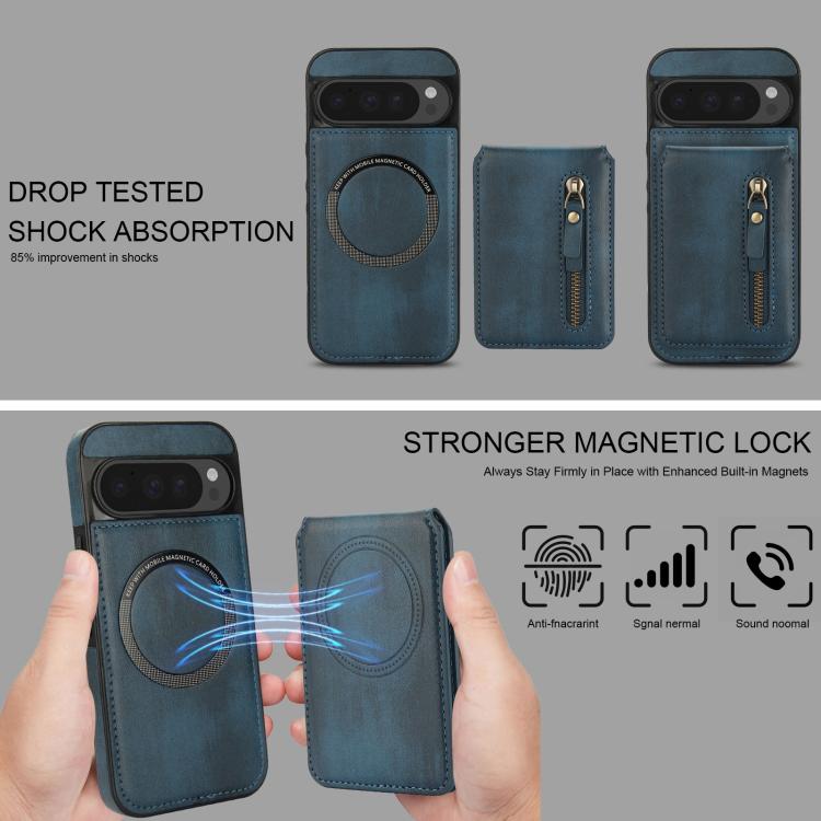 Funda de Cuero con Tapa Trasera Magsafe Dividida y Cremallera para Google Pixel 9/9 Pro (Azul)