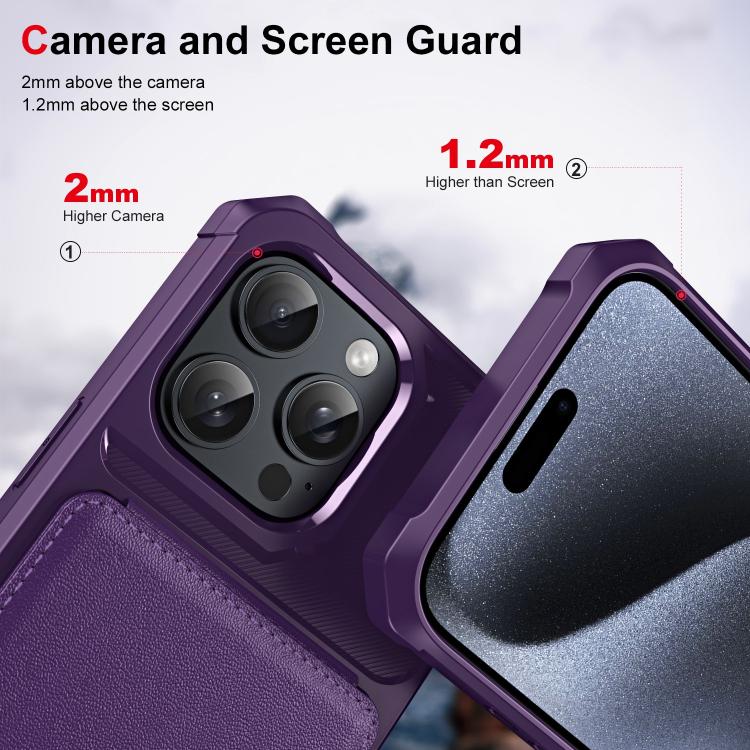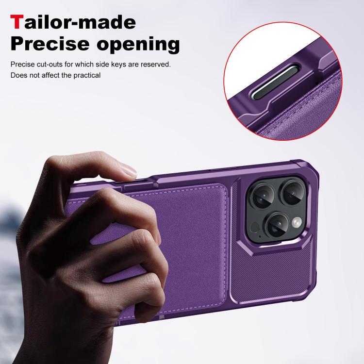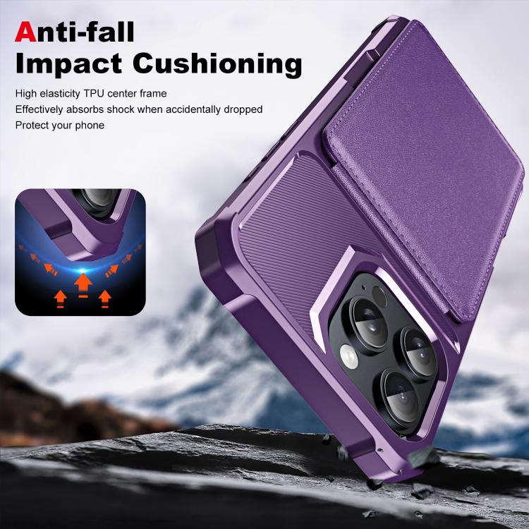 Funda para Teléfono Cuero iPhone 16 Pro Max con Tapa Vertical y Tarjetero (Morado)