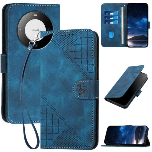 Funda de Cuero con Tapa y Cordón para Huawei Mate 60 Yx0080 con Diseño En Relieve (Azul Oscuro)