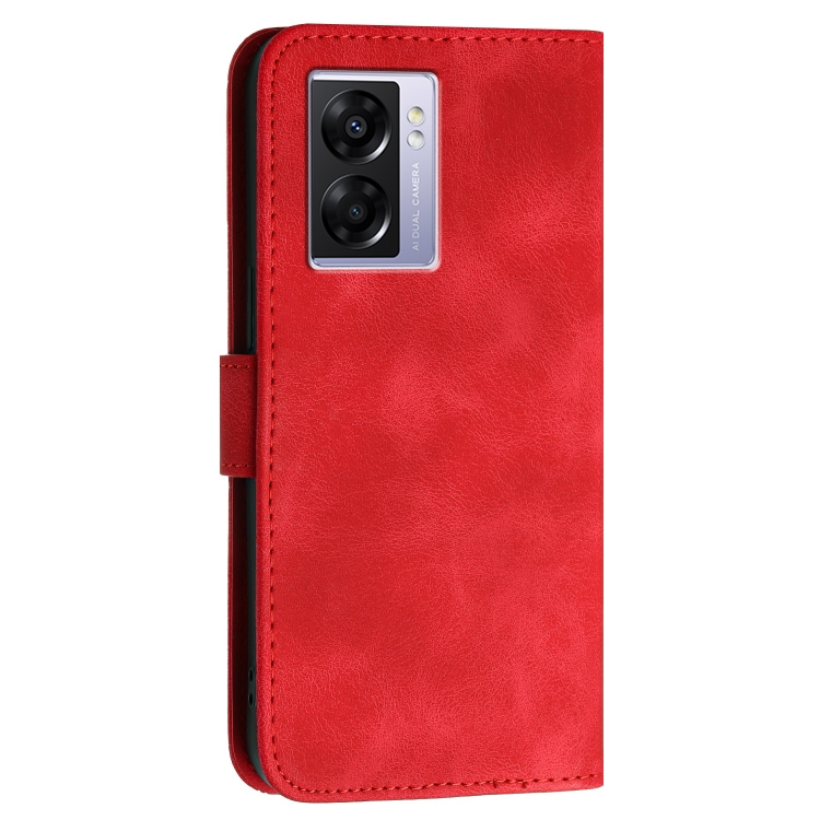 Funda de Cuero con Tapa y Cordón para Oppo A57 4G Global Yx0080 con Diseño En Relieve de Mariposa y Cuadrícula (Rojo)