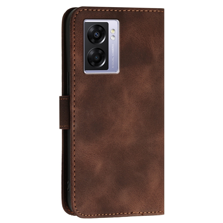 Funda de Cuero con Tapa y Cordón para Oppo A57 5G/A77 5G Yx0080 con Diseño En Relieve de Mariposa y Cuadrícula (Café)