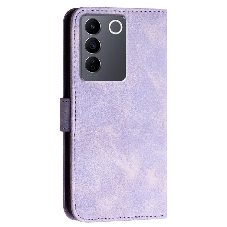 Funda de Cuero con Tapa y Cordón para Vivo V27E 4G Global Yx0080 con Diseño En Relieve de Mariposa y Cuadrícula (Morado Claro)