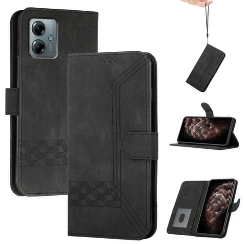 Funda de Cuero con Tapa y Diseño Cúbico para Motorola Moto G Play 2025/G Power 2025 (Negra)